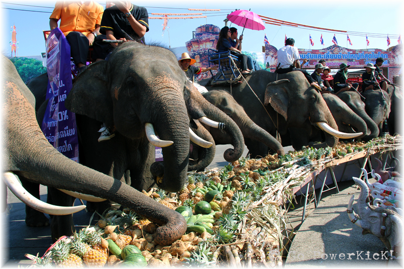 The festival takes place over two days, and is kicked off with an Elephant Buffet. Hundreds of elephants and their mahouts take part in a parade and lumber to the southern entrance