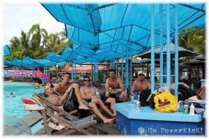 To enter the park you initially walk through what looks like a giant castle, and it’s easy to immediately feel like a kid again. Hearing the sounds of the roller coasters and talking about what water slides we were going to go down first had me overflowing with excitement. As we got our tickets, unlimited rides for 900 Baht, and headed to get settled I couldn’t stop smiling. Lining the sides of the lazy river, which wraps through the water slides, are beach chairs and tables. Prior to taking our first trip down the Speed Slide, we put down our things, cranked on some tunes, kicked back in our chairs and cheers’d a celebratory Leo. The park sells food and beer, both
