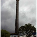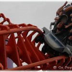 First stop, The Vortex. A metal maze of twists and turns that has the ability to turn your face white with fright. Once strapped into the seats the bottom drops out and you sit suspended, feet dangling, as the coaster pulls out and slowly climbs to the top. Just before dropping into 5 loops and a few other big drops you can see out in the distance. We saw the black clouds and a wall of water approaching fast. As we sped along t